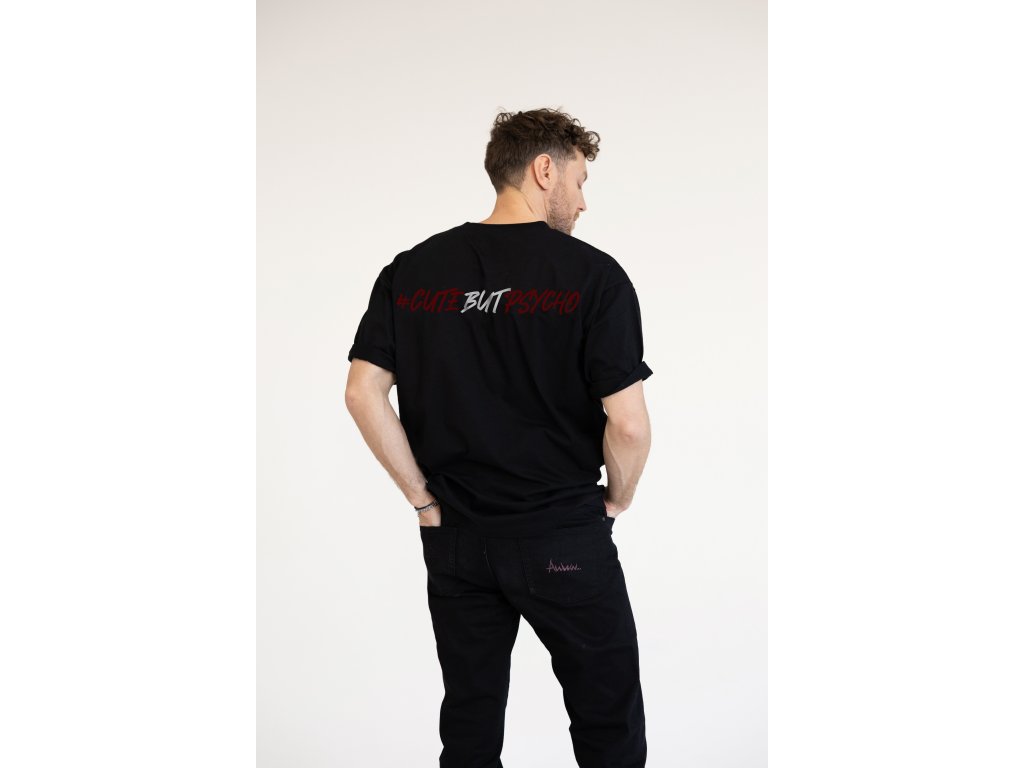 Unisexové oversized tričko spojuje pohodlí s moderním streetwearovým stylem. Na hrudníku ho zdobí decentní výšivka, zatímco na zádech najdete výrazný potisk #cutebutpsycho, který podtrhuje osobitý charakter trička. Volný střih a příjemný materiál zajišťují maximální komfort po celý den. Nadčasový design se snadno kombinuje s různými outfity. Ideální volba pro ty, kteří chtějí vypadat stylově a zároveň se cítit pohodlně.